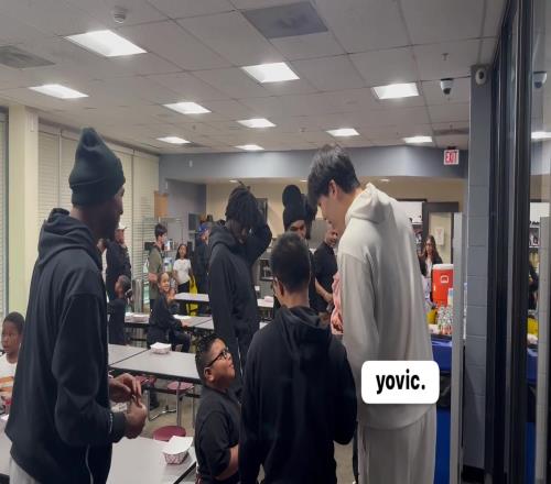 语言隔阂挡不住的热情!小杨现身开拓者社区活动与小球迷亲密互动